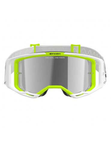 Óculos ALPINESTARS Vision 8 Wordmark branco / amarelo (espelho prata). Os Vision 8 Goggles foram concebidos e desenvolvidos com dois objectivos em mente: conforto e desempenho. Os suportes estrategicamente concebidos com o exclusivo Strap Wedge de 13 graus permitem que a estrutura leve A-FLEX crie um ajuste inigualável. Um avançado sistema de ventilação RAM-AIR, juntamente com uma espuma facial moldada em 3D, garante que os óculos Vision 8 proporcionam níveis máximos de desempenho, independentemente das condições.