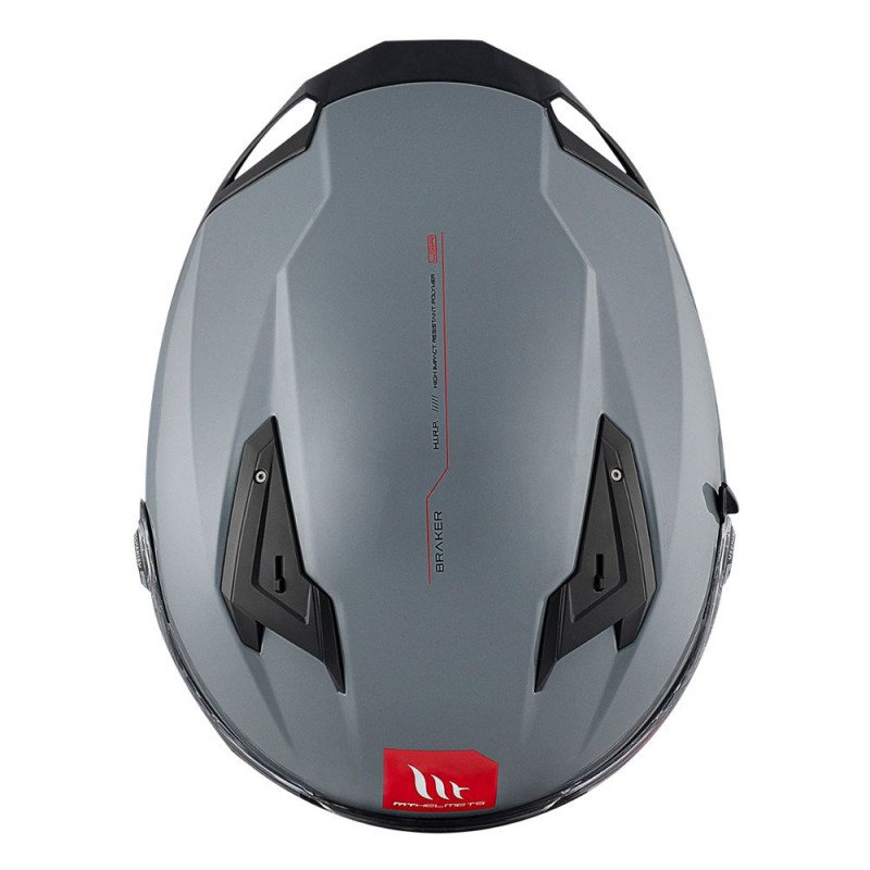 Capacete MT FF128SV Braker SV Solid A12 cinza brilho. O novo Braker SV é outra das inovações da MT Helmets para 2024. É um modelo de entrada de gama no segmento sport-touring e inclui soluções de ponta, como o sistema de montagem do ecrã MT-QVSS, a caixa do intercomunicador UCS e uma pala de sol com libertação rápida.