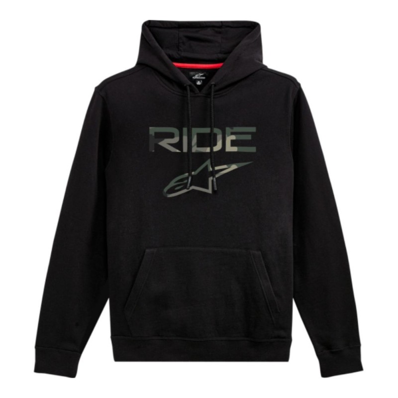 Sweatshirt ALPINESTARS Ride 2.0 Camo Hoodie preto. Logotipo Alpinestars Ride com estampa camuflada na frente.