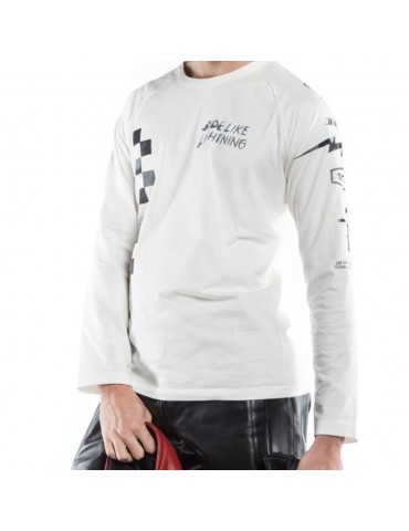 T-shirt de manga comprida dinamarquesa 100% algodão com desenho retro e desportivo.
