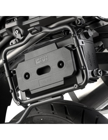 Kit de ancoragem GIVI S250KIT Universal. Kit de ancoragem universal para a montagem da caixa de ferramentas S250 no suporte do baú lateral PL, PLR, PL...CAM (não compatível com PL e PLR com suporte arredondado). No caso de montagem de uma caixa de ferramentas S250 + S250KIT num suporte do baú lateral para o qual a compatibilidade do produto não foi verificada pela GIVI, é necessário verificar antes da condução que nada interfere com a caixa de ferramentas/baú ao longo de todo o arco de curso do garfo traseiro.