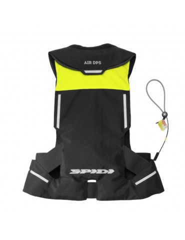 Colete SPIDI Air DPS amarelo fluor. E um sistema de proteção que envolve o piloto tanto no tronco como no pescoço, aumentando assim o nível de segurança nas áreas mais sensíveis do corpo. Este sistema foi concebido para reduzir os movimentos mais bruscos do pescoço, evitando assim ferimentos graves e aumentando consideravelmente a tendência do corpo a rolar, reduzindo assim possíveis torções mais prejudiciais.