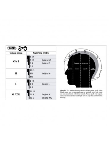 Substituição SHOEI JO. Forro central, a espessura do estofamento é medida em milímetros. Os tamanhos mais finos são utilizados para um ajuste mais pequeno, os tamanhos mais grossos para um ajuste maior. Verificar a tabela de tamanhos para cada estofo.