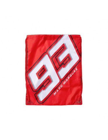 Saco de ginástica desportiva de cor vermelha e número 93.