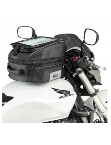 Saco de depósito GIVI XS306Y L/Xstream P/BF 25 LTS preto. Com o novo sistema Tanklock para os sacos de depósito, as correias e os ímanes utilizados até agora para os fixar à moto são eliminados; graças a um pequeno anel metálico que é fixado à tampa do depósito e à base com o sistema de engate especial destes sacos, a fixação à moto é efectuada com uma ligeira pressão; para o desengatar, basta puxar uma alavanca vermelha situada na base.