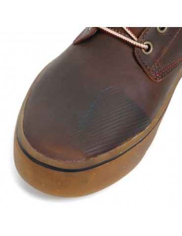Sapatilhas TCX Dartwood WP castanho. Feito de couro de grão inteiro com forro impermeável T-Dry que mantém os seus pés sempre secos. Fecho e atacadores laterais com uma correia flexível onde se pode guardar os atacadores para evitar que fiquem presos nos pés da bicicleta. O TCX Dartwood tem a última geração de protecção D3O sobre o maléolo, bem como protectores adicionais para os dedos dos pés e calcanhar. A sola exterior Groundtrax foi desenvolvida para assegurar estabilidade, aderência e tracção tanto dentro como fora da bicicleta.