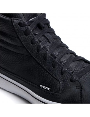 Sapatos TCX Street 3 WP preto / preto / branco. Com o seu estilo Converse, os três sapatos de motociclismo à prova de água da Rua TCX farão as delícias dos ciclistas urbanos que usam a sua moto para o trabalho ou para um passeio pela cidade. Graças à sua sola anti-torção, reforços maleolares e reforços semi-rígidos no calcanhar e no dedo do pé, permitir-lhes-ão andar com toda a segurança.